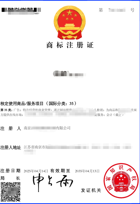 3. 若初审通过,商标会进入3个月整的公示期,公示期内若无他人提出异议,公示结束后约20天即可领取商标注册证。
